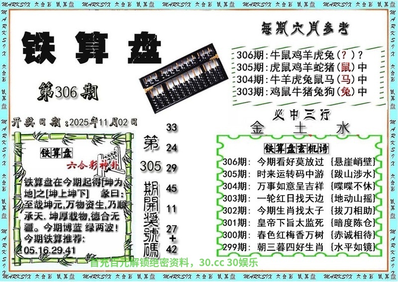 | 307期:精选三行❤️【火土水】开:狗20准 |