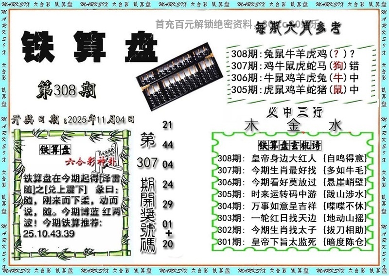 | 308期:精选三行❤️【金木火】开:兔39准 |
