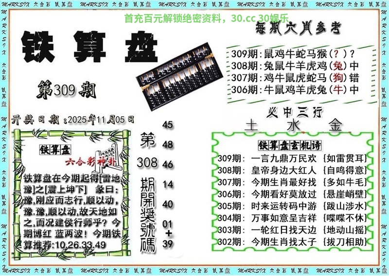 | 309期:精选三行❤️【水火土】开:鼠06准 |